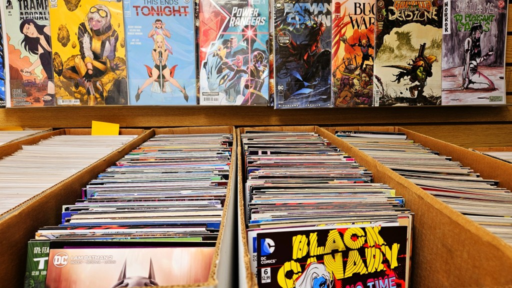 Toward the back there is an area lined with games; role playing, board, trivia, all of it. Then come the comic books. Bins packed with plastic wrapped gems, of every genre, big name publications, small press, the works. Yes, in this well managed shotgun bungalow they even have a lovely kids book section. Because of course they do.