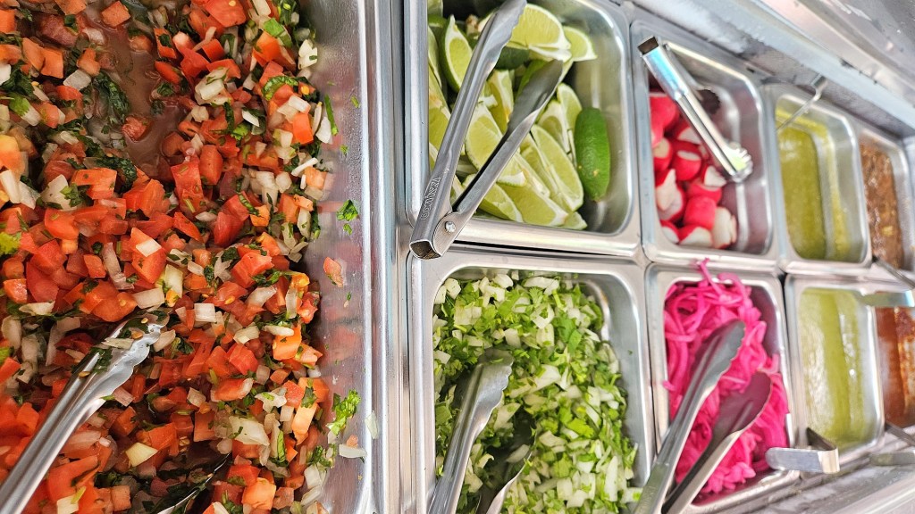What memory does do me honest is that I immediately fell in love with the food. It was all so good. The chicken and carne asada was cooked and seasoned perfectly, the beans and rice were the same, fresh cabbage and tomatoes, juicy limes, tasty salsas, fantastic pickled red onions – all of it.