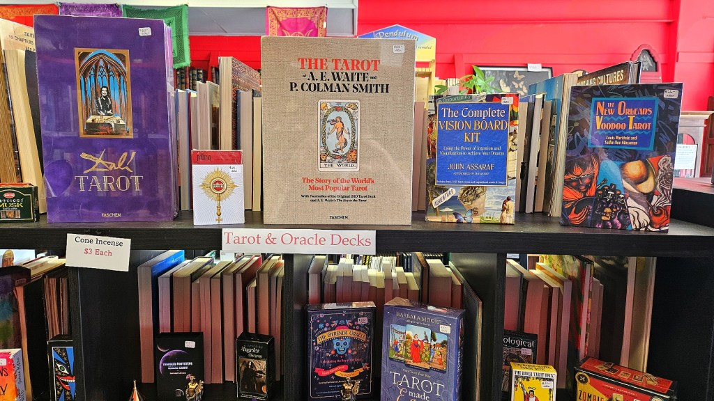 Nexus also does trade, consignment and will take donations. Regarding the donations point, please don’t go there and dump a bunch of Stephen King books you’ve been meaning to get rid of, because they have their fill of that. But if you have something in your or your cool aunt’s that recently passed, the one that always wore dark flowy clothes and thought “Practical Magic” was a Christmas movie, collection of books in good condition focused on witchcraft, astrology, divination, the paranormal, etc, they will most likely take it off your hands or cut you a deal.